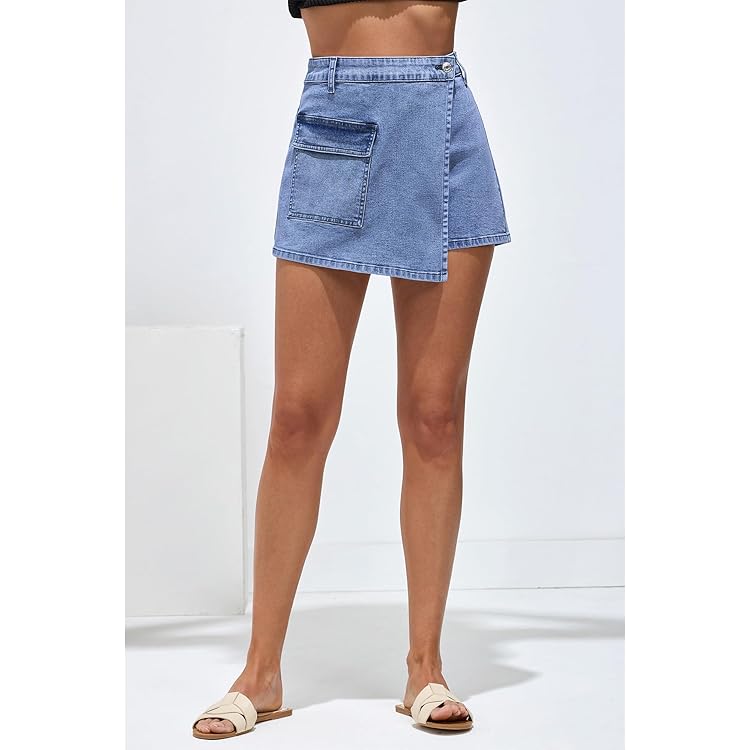 Denim Skorts for Woman Cargo Faux Wrap Jean Skort Skirts Stretchy High Waisted Skirt Shorts Country Concert Wear