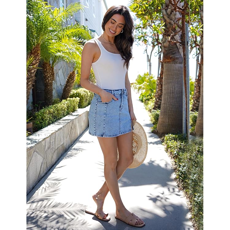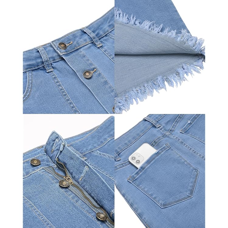 Skorts Skirts for Women Denim Mini Skirt Side Slit with High Waisted Jean Shorts Stretchy