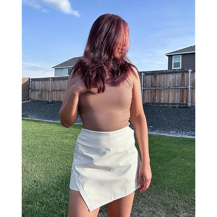 Shorts for Women Faux Leather Skorts High Waisted PU Leather Shorts Elastic Waist Ruched Wrap Skorts Skirts