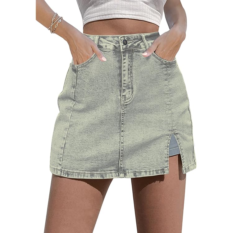 Skorts Skirts for Women Denim Mini Skirt Side Slit with High Waisted Jean Shorts Stretchy