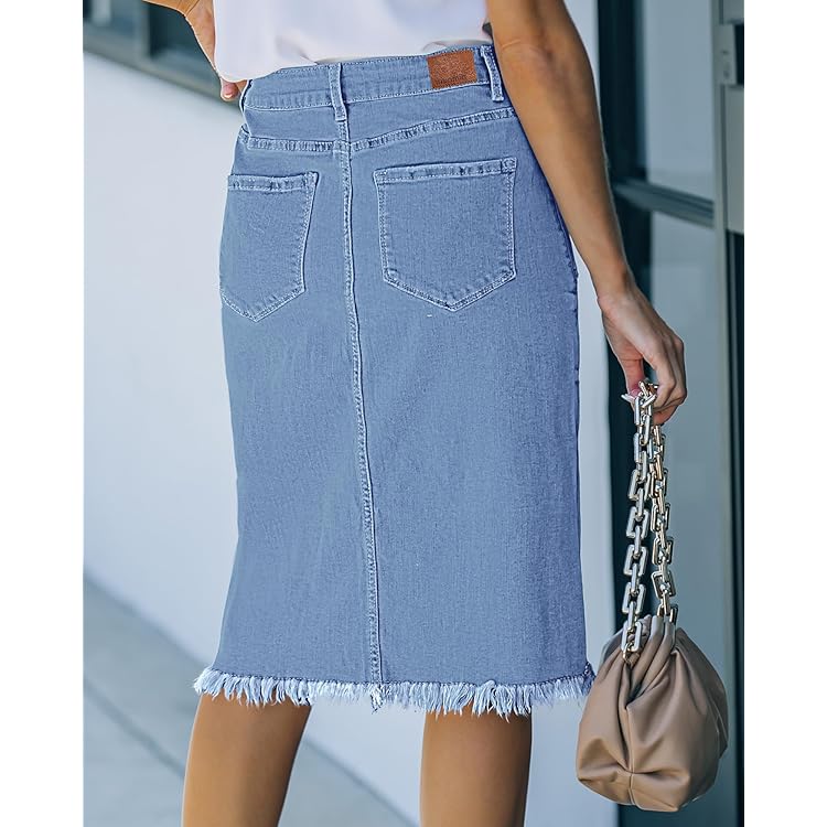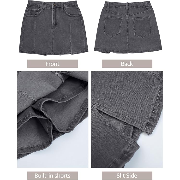Skorts Skirts for Women Denim Mini Skirt Side Slit with High Waisted Jean Shorts Stretchy