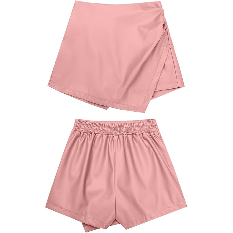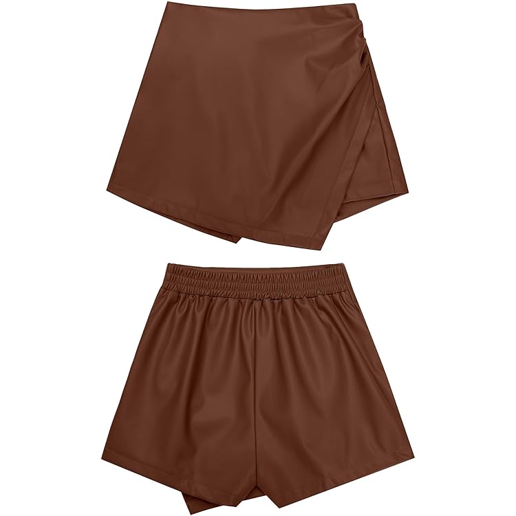 Shorts for Women Faux Leather Skorts High Waisted PU Leather Shorts Elastic Waist Ruched Wrap Skorts Skirts
