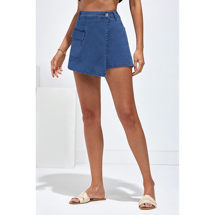 Denim Skorts for Woman Cargo Faux Wrap Jean Skort Skirts Stretchy High Waisted Skirt Shorts Country Concert Wear