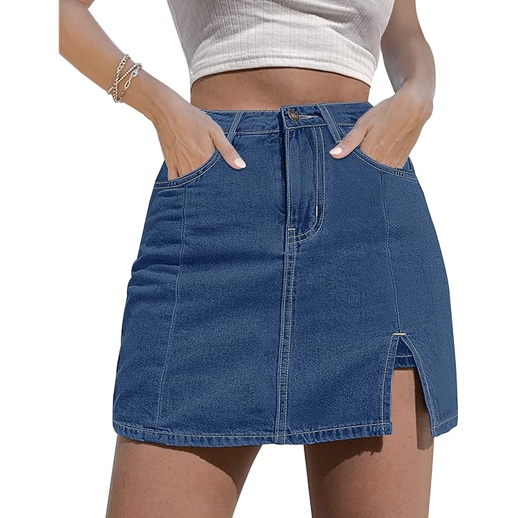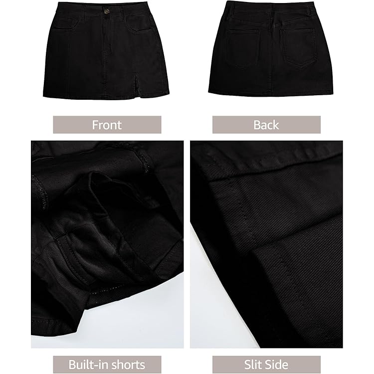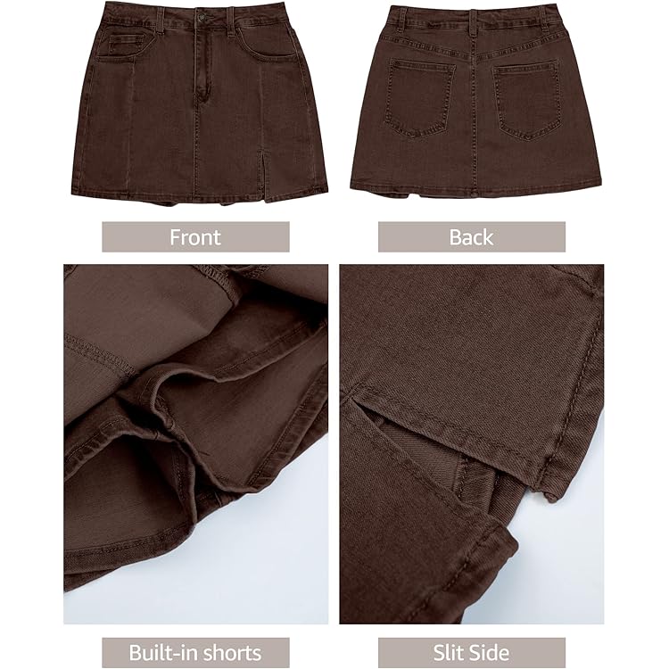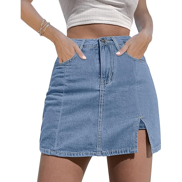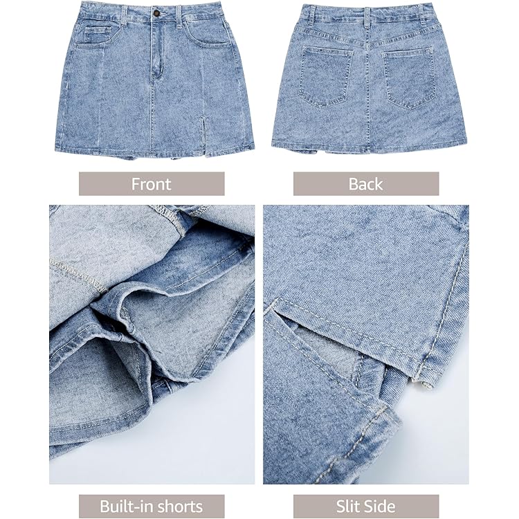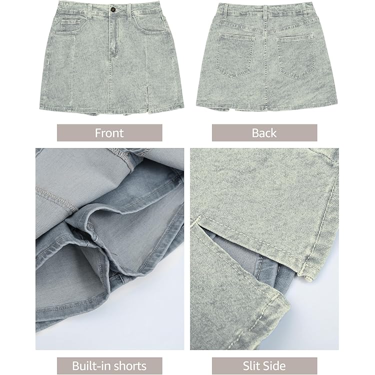 Skorts Skirts for Women Denim Mini Skirt Side Slit with High Waisted Jean Shorts Stretchy