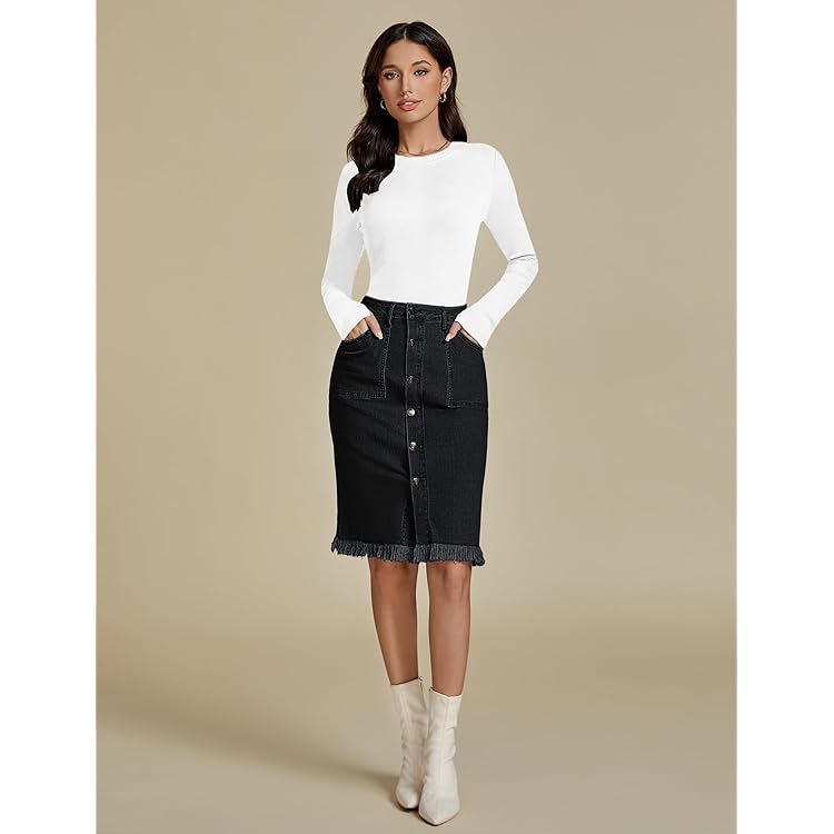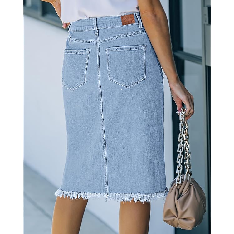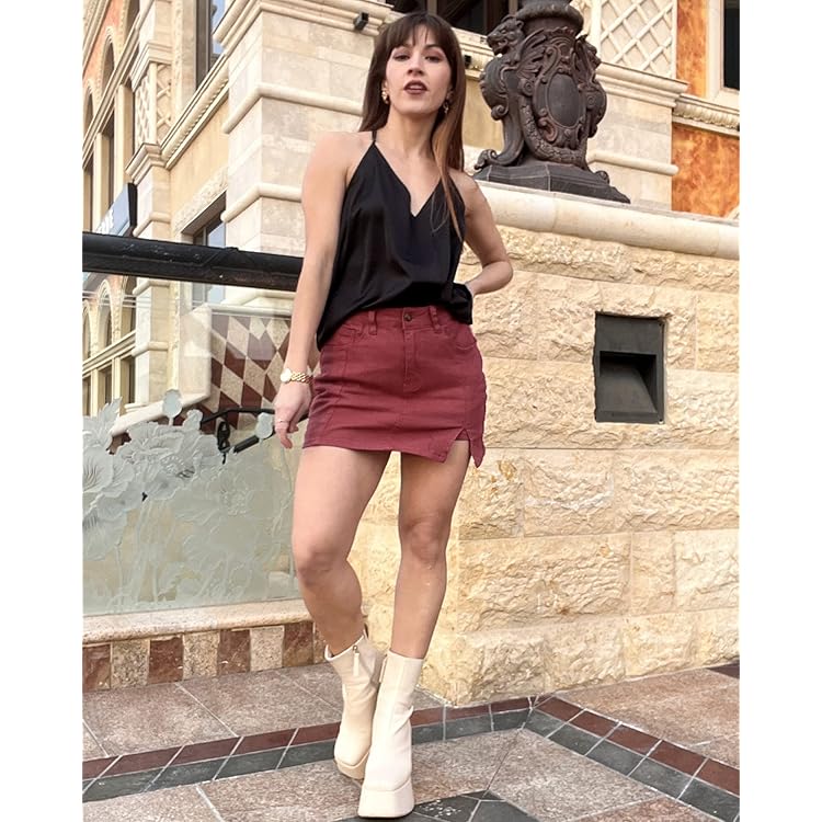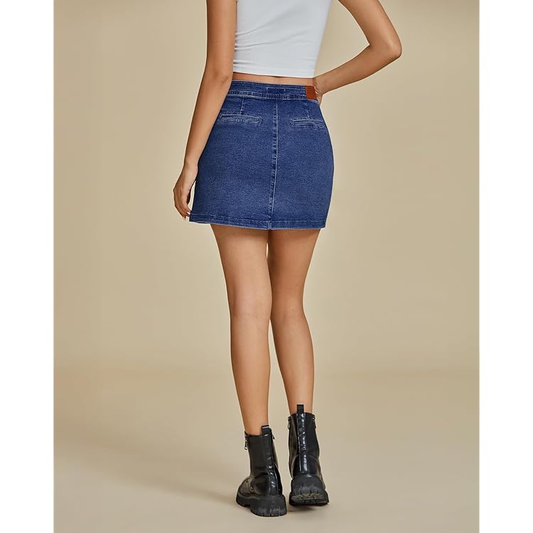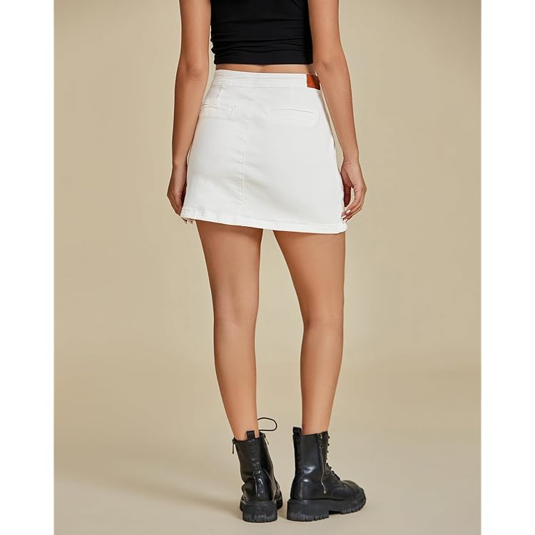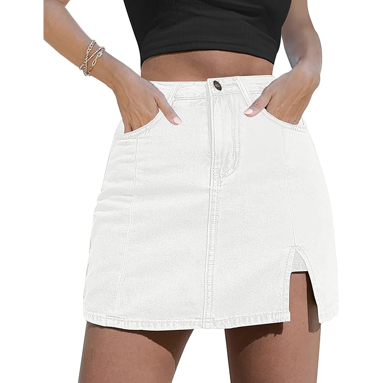 Skorts Skirts for Women Denim Mini Skirt Side Slit with High Waisted Jean Shorts Stretchy