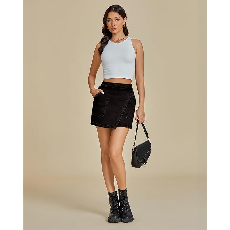 Denim Skorts for Woman Cargo Faux Wrap Jean Skort Skirts Stretchy High Waisted Skirt Shorts Country Concert Wear